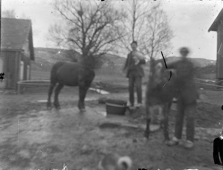 Enligt notering: "På gårdsplan med föl. Artur Johansson den äldre Karlslund".