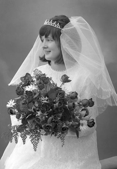 Enligt fotografens journal 1965-1969: "Bruden till Kent Persson, Hällebäcksvägen 68 Stenungsund
