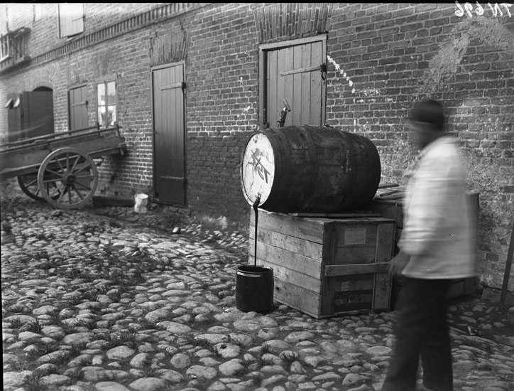 Enligt tidigare noteringar: "Tunna tappas på innehåll. Kullerstensbelagd gård vid Natt och Dags Bryggeri."