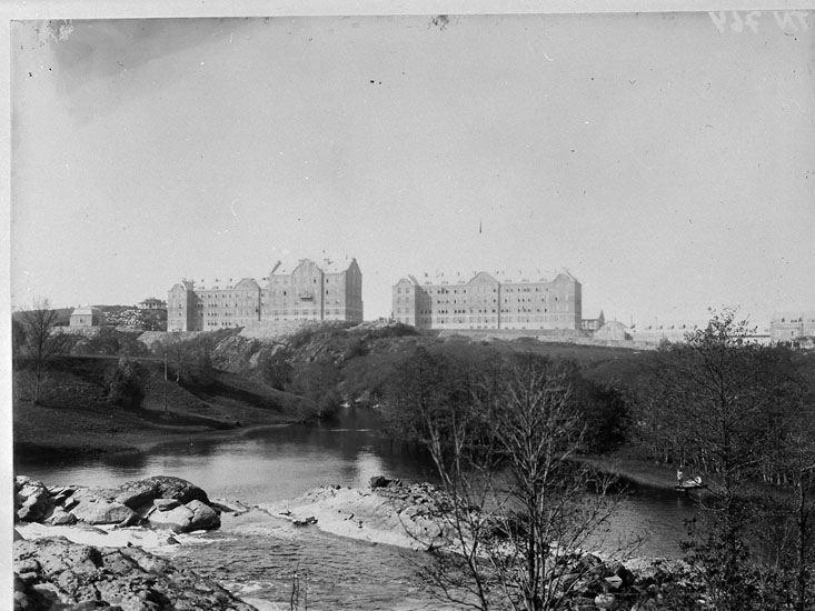 Enligt tidigare noteringar: "Bohusläns regementes kasernbyggnader från nordost."