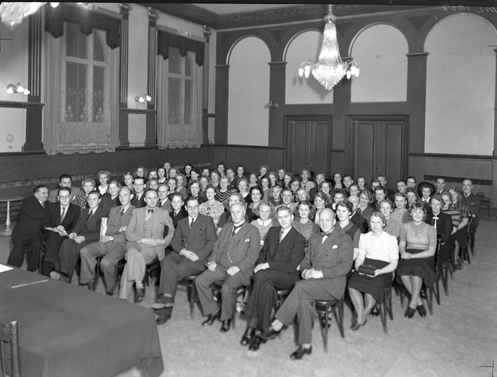 Uppgift enligt fotografen: "Uddevalla. Grand. Kurs Bohusläns Köpmannaförb. årsmöte."