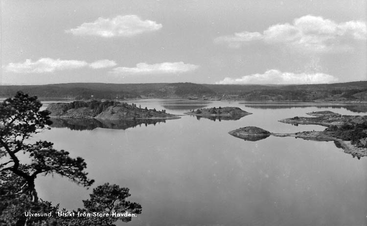 Enligt Bengt Lundins noteringar: "Ulvesund. Utsikt från Store Havden (med text och moln). Vykort KGH BL 1321".