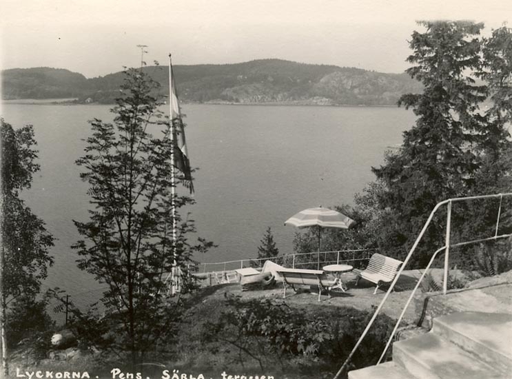Enligt Bengt Lundins noteringar: "Utsikt från Särla Pensionat. Lyckorna. Terassen".