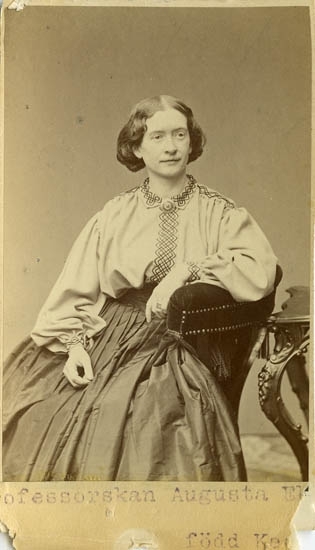 Text på kortets baksida: "Professorskan Agusta Ekman Född Koch.