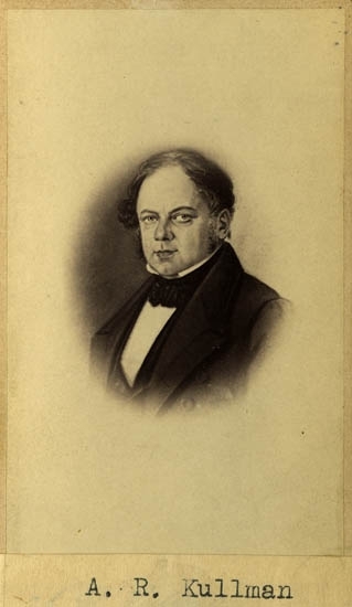 Text på kortets baksida: "Sjökaptenen sedermera Handlanden Anders Reinhold Kullman. Dansk v. Consul. Död d. 23 april 1860 62 år 7m 9d".