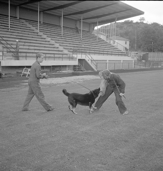 Enligt notering: "Kaspar Carlstrand tränar hundar (varvets) Rimnersvallen U-a 6-8-56".
