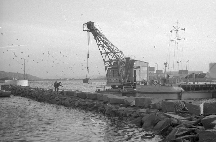 Enligt fotografens notering: "Fiskhamnspir byggs".