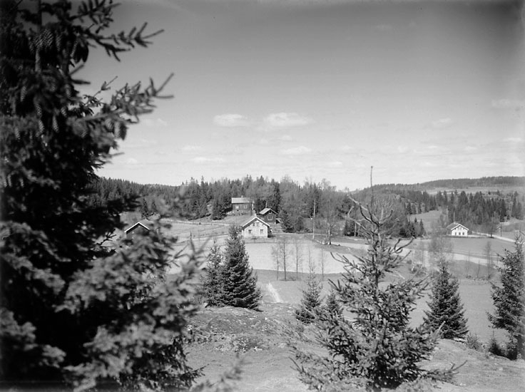 Ett öppet, böljande landskap med åkrar och kullar. Några hus ligger vid skogsbrynet. Där bodde Gunnar i Kalsås fam tills hans död 2001. Till höger i bild kalsås skola.