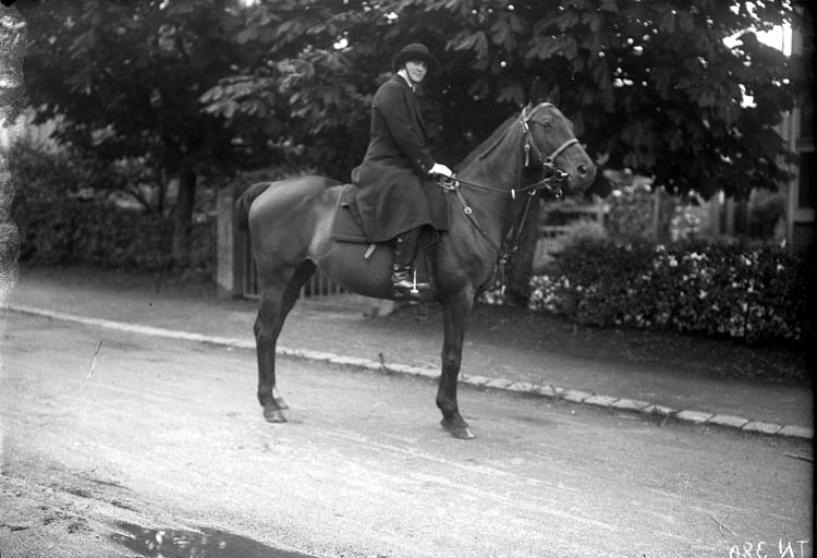 Enligt tidigare noteringar: "Ryttarinna, ridkläder. Dam till häst."