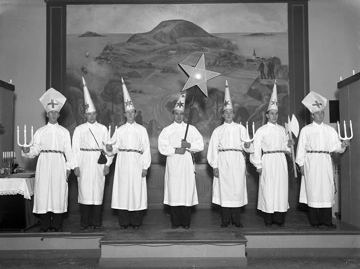 "Stjärngossar, framför tavlan. V.U.S. 1940" enligt bildtext.