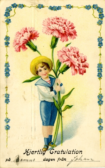 Notering på kortet: Hjertlig Gratulation på namsdagen från Johan.