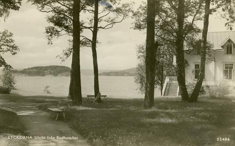 Enligt Bengt Lundins noteringar: "Lyckorna. Utsikt från Badhotellet".