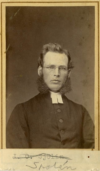Text på kortets baksida: "Före läraren vid Lancaster i Uddevalla Johannes Olsson Spolén, f. 1840".