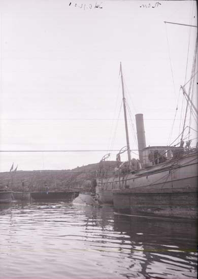 Enligt text som medföljde bilden: "Nya Varfet. Minfartyget "Ran" o undervattensbåt "Hajen". Sept. 05".