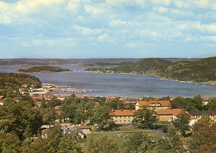Enligt Bengt Lundins noteringar: "Ljungskile. Utsikt över fjorden. Folkhögskolan i förgrunden".