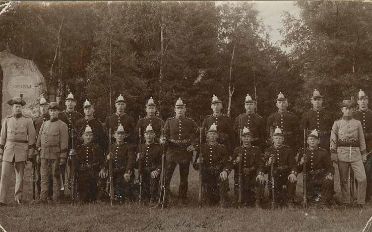 Enligt Bengt Lundins noteringar: "Dagvakten med gevär vid Landskronastenen".