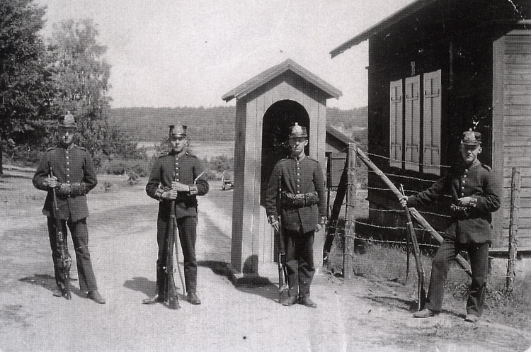 Enligt Bengt Lundins noteringar: "Vaktkur vid ammunitionsförråd byggt 1897. Torvboden skymtar i bakgrunden.