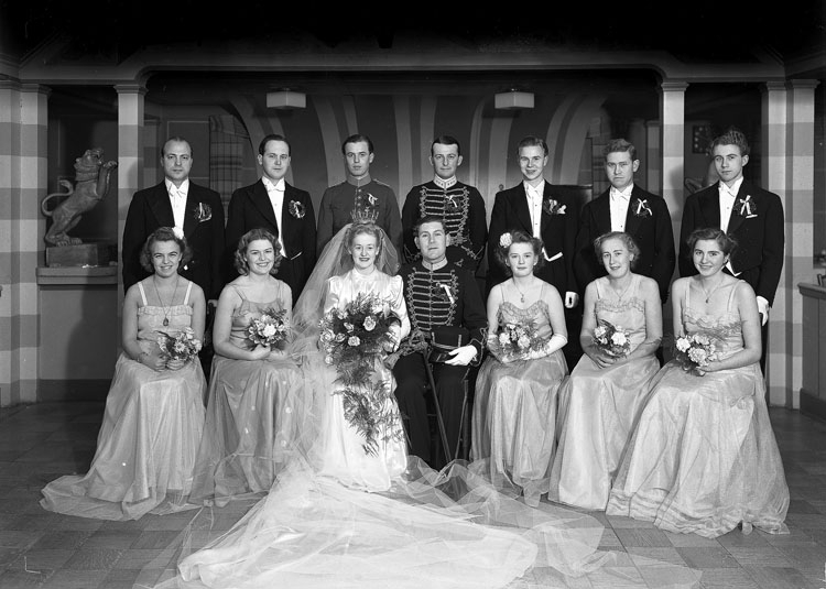 Uppgift enligt fotografen: "Uddevalla. Bröllop. Grupp. Löjtnant E. Grauers, Malmö."