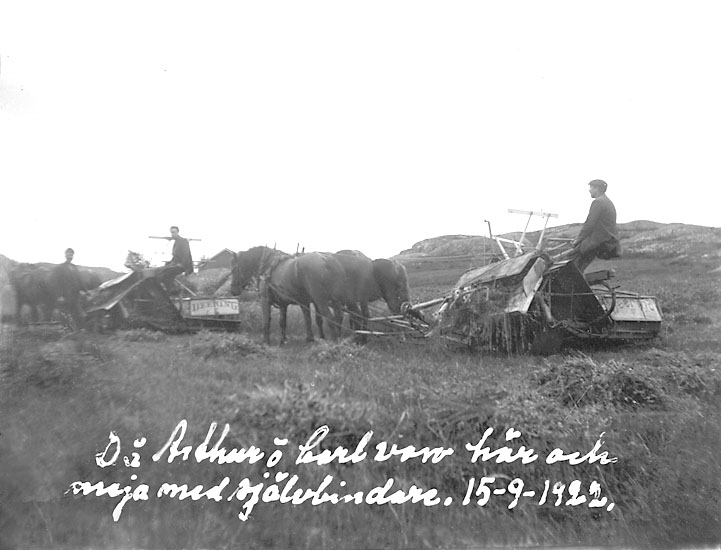 Då Arthur och Carl voro här och meja med självbindaren 15 sept. 1922