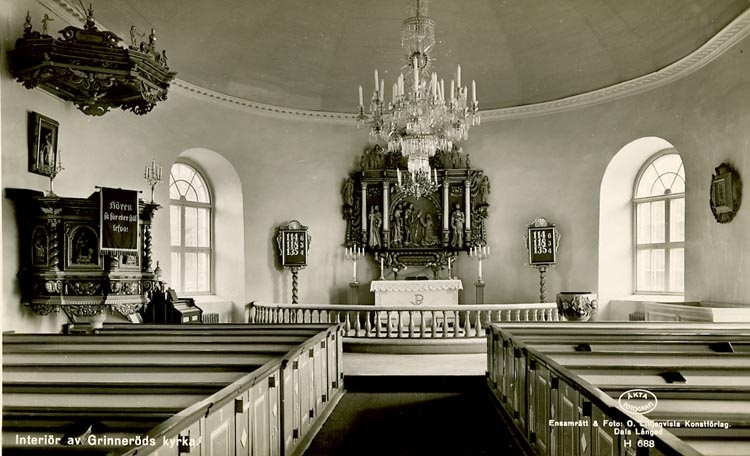 Enligt Bengt Lundins noteringar: "Grinneröds kyrka. Efter ombyggnaden 1942".
