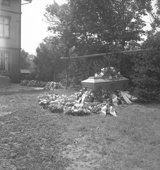 Text till bilden: "Kista med blommor. Högströms. Slätten. 1948.06.19"