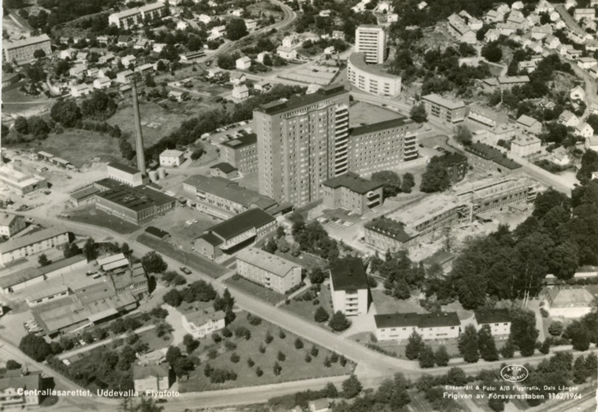 Text på kortet: "Centrallasarettet, Uddevalla. Flygfoto".