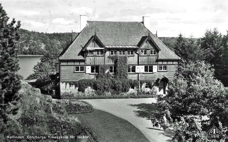 Text på kortet:" Hallinden. Göteborgs Yrkesskola för flickor".