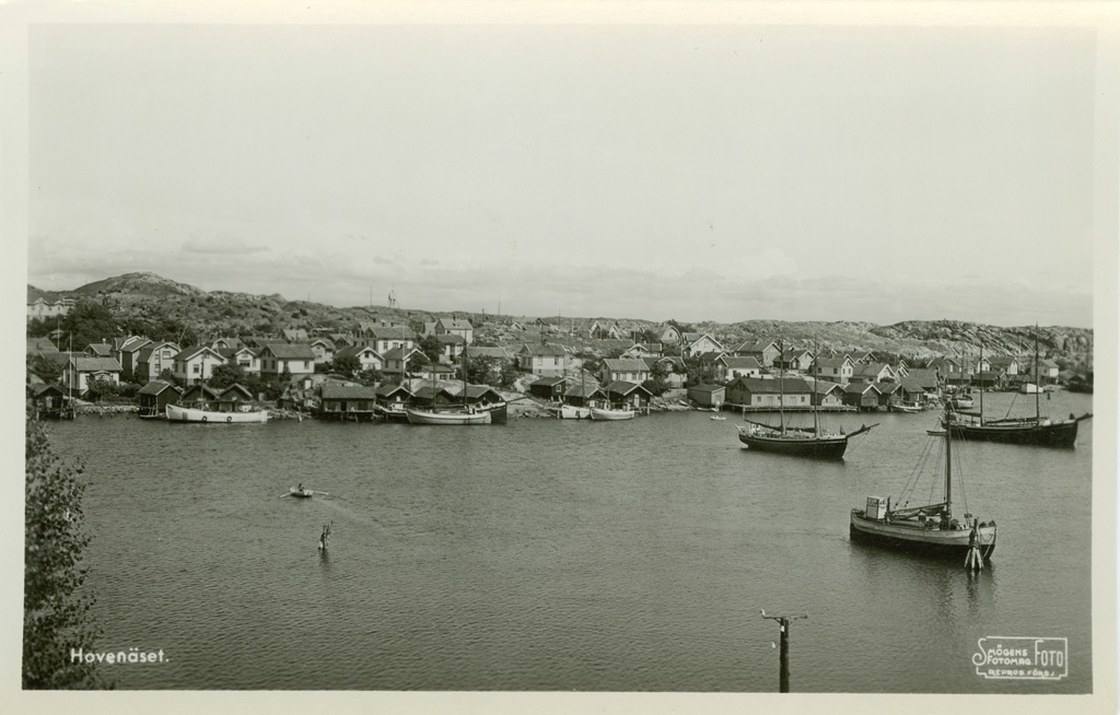 Text på kortet: "Hovenäset. Härliga salta bad, segling, fiske och soliga kilippor".