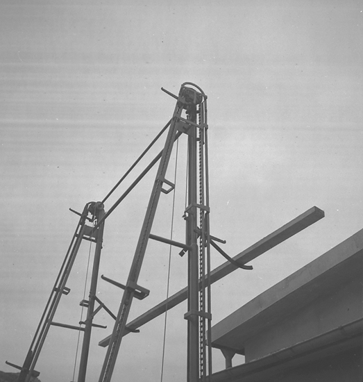 Titel: Text till bilden: "Helldén & Co. Maskin f. upplyftning av virke 1947.11.27".