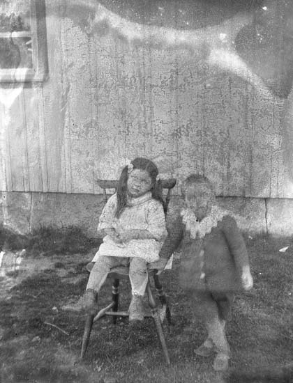 Enligt notering: "Två barn med stol ".