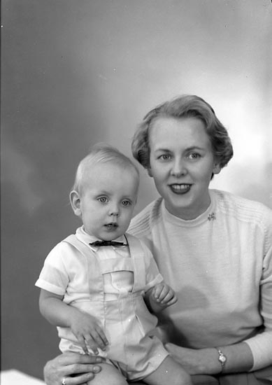 Enligt fotografens notering: "Fru Vera Nilsson med sonen Göran Villa Bergalid Stenungsund".