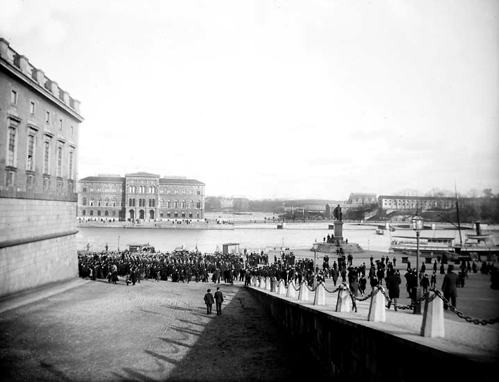 Enligt fotografens noteringar: "Vaktparaden vid Skeppsbron."