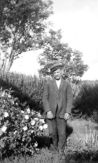 Enligt senare noteringar: "Reproduktion av äldre foto, föreställande en man i sommarlandskap." (BJ)
