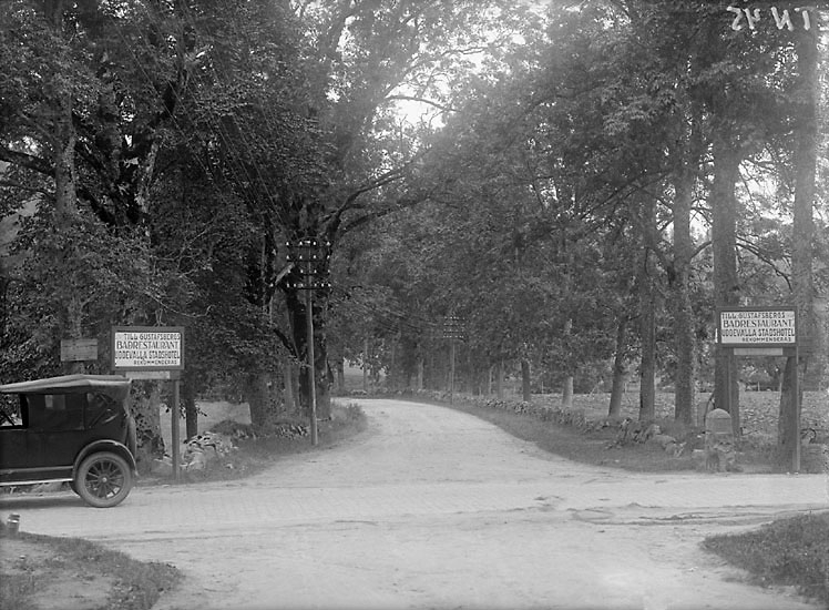 Enligt senare noteringar: "Vägkorset vid Höjentorp vid Kristinedal, Gustafsberg. Bil delvis synlig från norr."