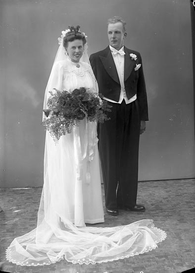 Enligt fotografens journal nr 7 1944-1950: "Olofsson, Brudparet Grössby Ucklum".