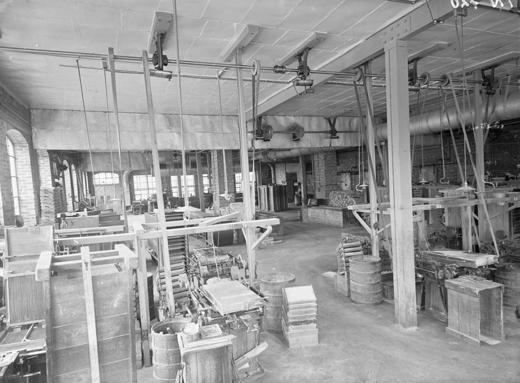 Enligt tidigare noteringar: "Interiör från Uddevalla Tändsticksfabrik. Iläggarsalen, moment före satsning."