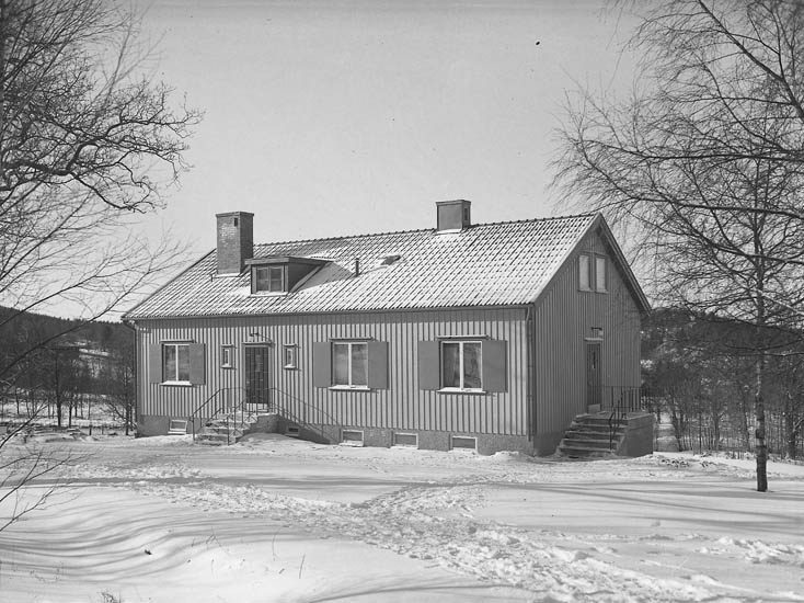 Text till bilden:"En villa med snötäckt gårdsplan. Kamratgården".