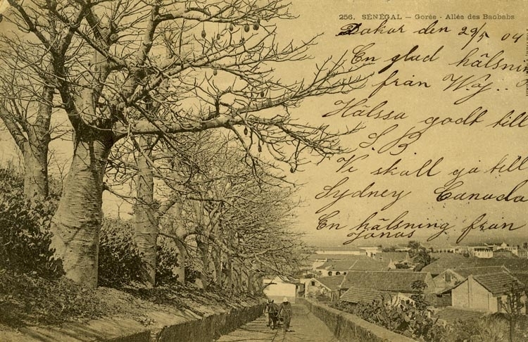 Notering på kortet: Senegal. Gorée Alleé des Baobabs.