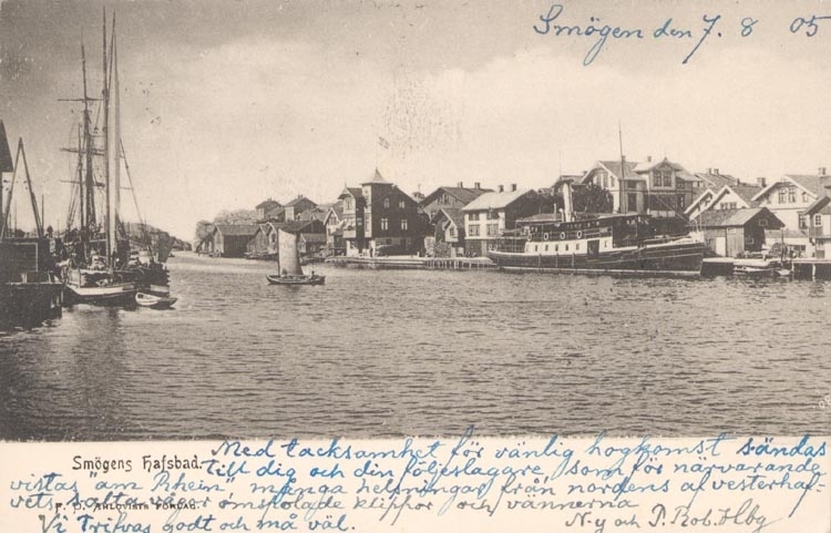 Tryckt text på kortet: "Smögens Hafsbad".