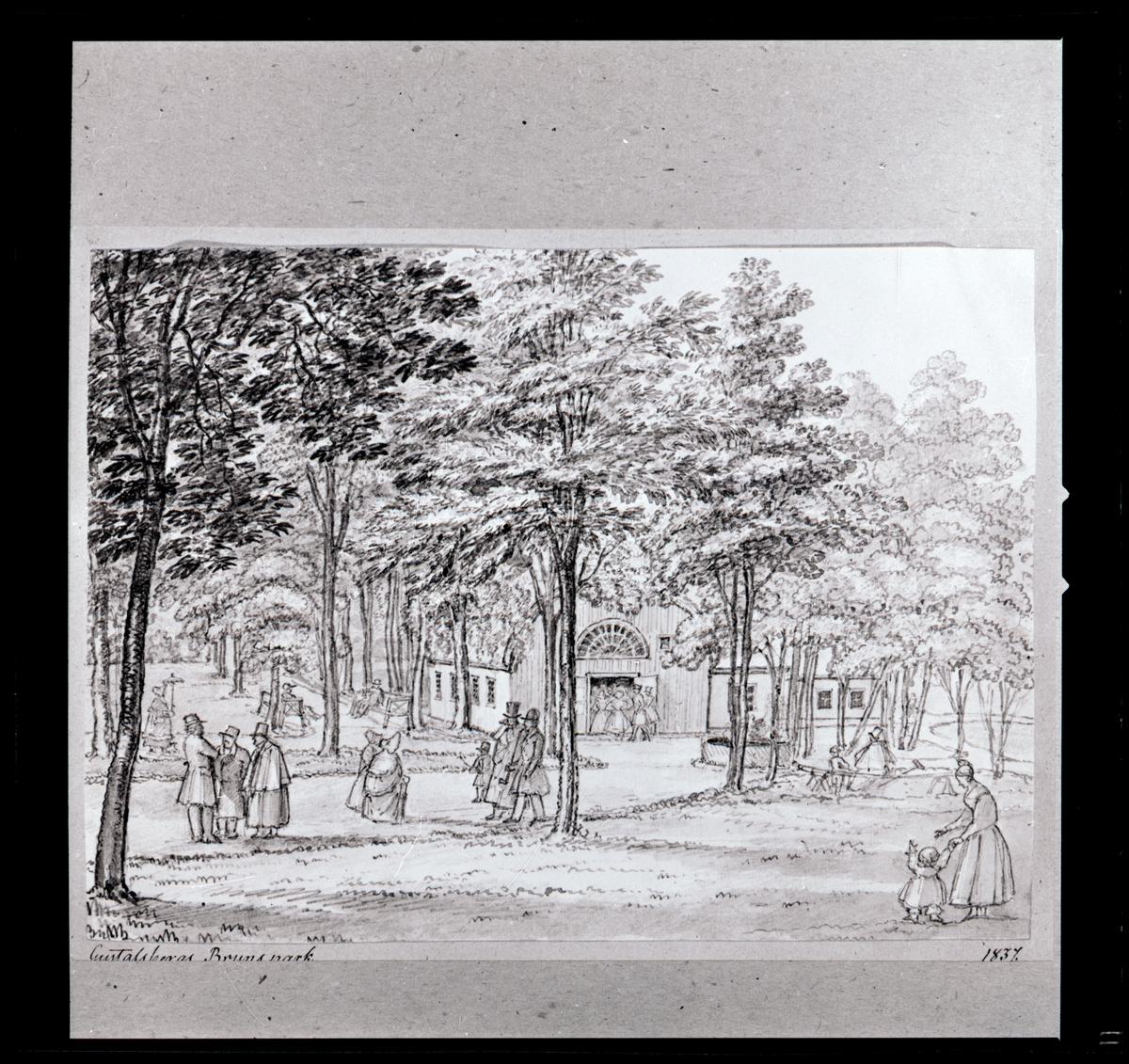 Medföljande text: "Gustafsbergs, brunnspark teckning".