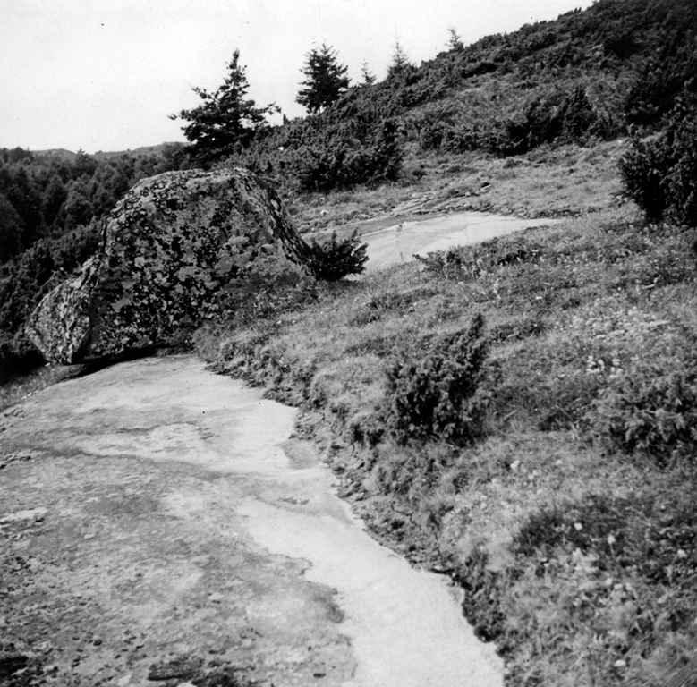 Enligt text: "Efter a 2144. Översiktsbild Bottna sns fornm. (Gisslegärde nr 9-10). Hällristningar Å. Fredsjö foto 2/7 1947".