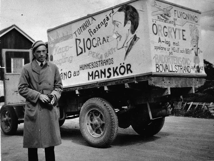 Lastbil som marknadsför olika aktiviteter på "Badortens dag" 1929 i Bovallstrand