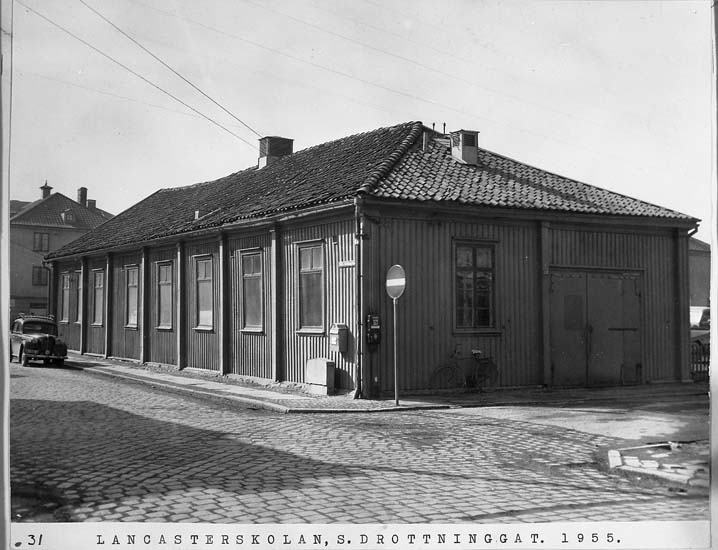 Text på kortet: "Lancasterskolan, S. Drottninggat. 1955".