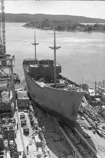 Sjösättning av 102 M/S Cali från stapelbädd I.