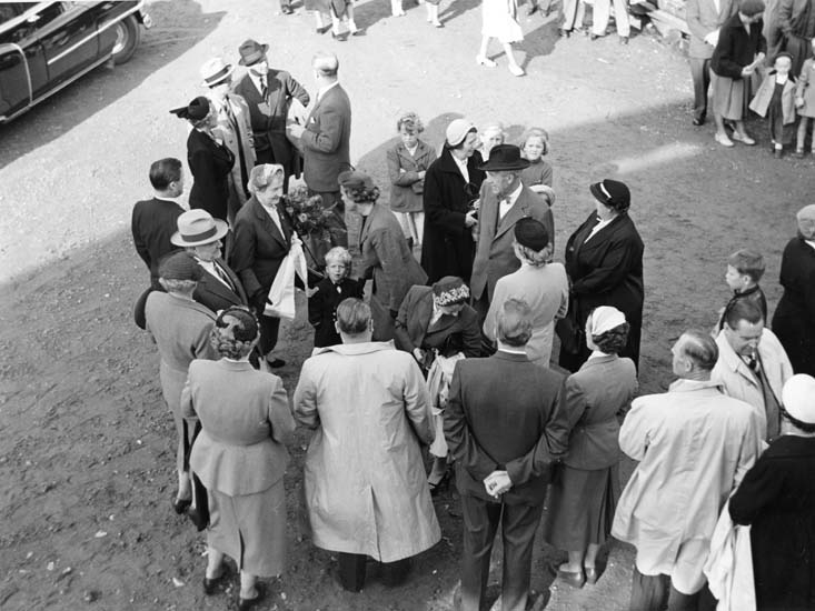 Publik inför dop och sjösättning av 114 M/S Hjördis Thordén.