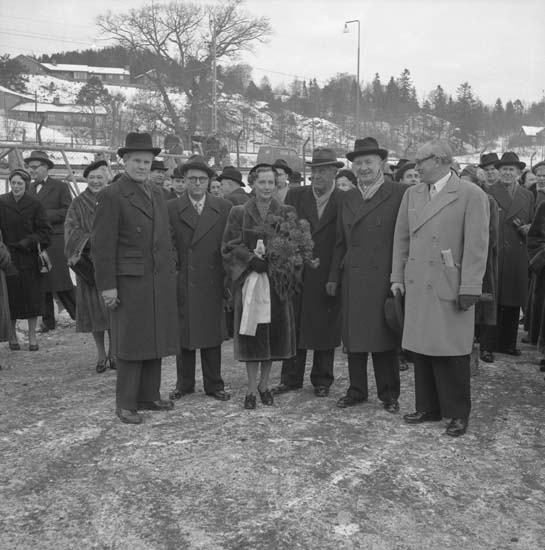 Dop och sjösättning av fartyg 139 M/T Faunus. Fartygets gudmor med bland andra Gustaf B. Thordén.