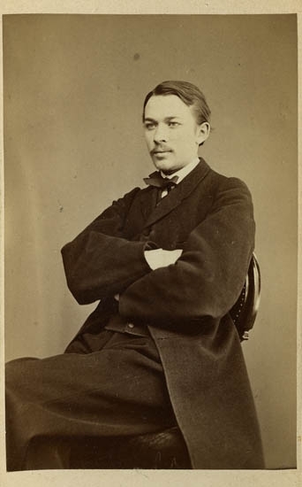 Text på kortets baksida: "Bokhållaren Gustaf Michael Hegardt, f. 1846 d. 1875. Gift med Anna Hilda Christina Carlström, f. 1849".