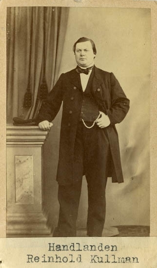 Text på kortets baksida: "Handl. o Danske Konsuln Reinhold Kullman, f 1823 d 1867".