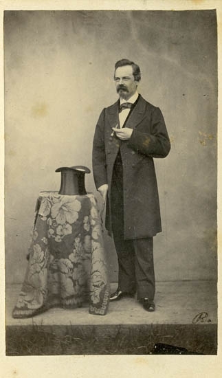 Text på kortets baksida: "Telegrafdirektör Hugo Reinhold Rhen, Wenersborg. F. 1827".