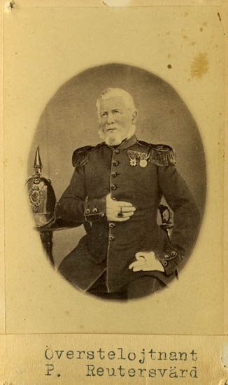 Text på kortets baksida: "Öfverstelöjtnanten vid Bohus Läns Regemente Pontus P:son Reutresvärd, f. 19 augusti 1794 d. 19 december 1862".